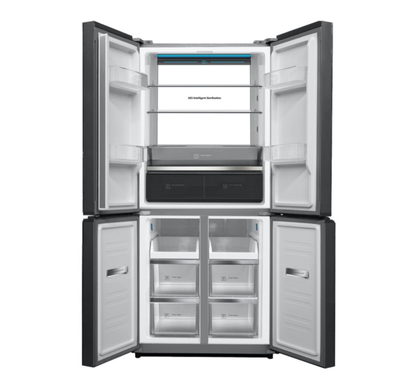 - Four-Door Design: Features a modern and functional four-door layout, allowing better organization of fresh and frozen food items with easy accessibility.